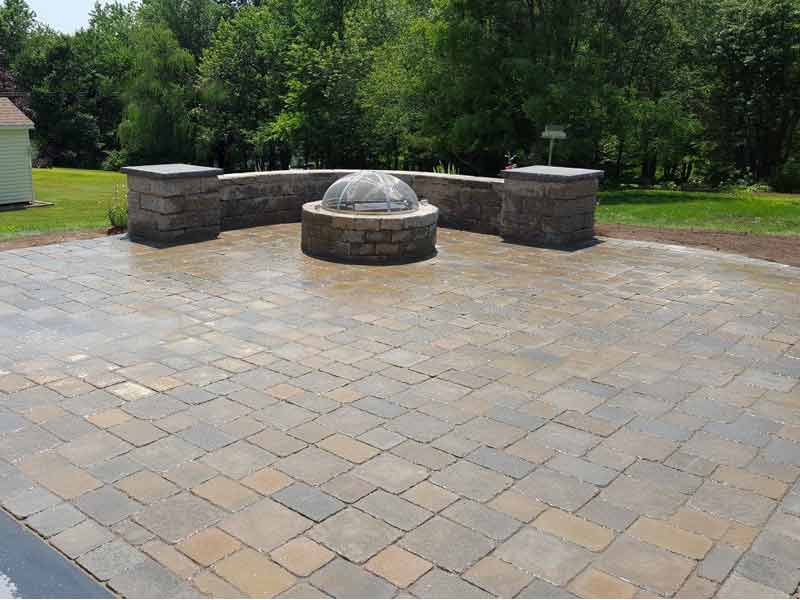 Patios with sitting walls, fire pits and pillars, with or without lighting